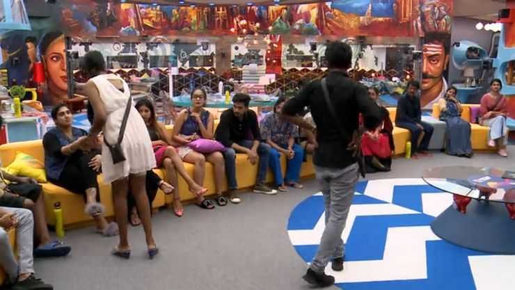 வெளியே வந்த சாண்டியும் பிக்பாஸ் வீட்டில் உள்ள அதாவது இதை நாமினேஷனில் உள்ளவர்கள் என்று இல்லாமல் ஒருவரை எலிமினேஷன் செய்யவேண்டும் என்று கூறுகிறார், இதனை கேட்ட பிக்பாஸ் போட்டியாளர்களும் என்ன இது பிக்பாஸ் இப்படி செய்கிறார் எனக் கூறிகின்றனர்.
